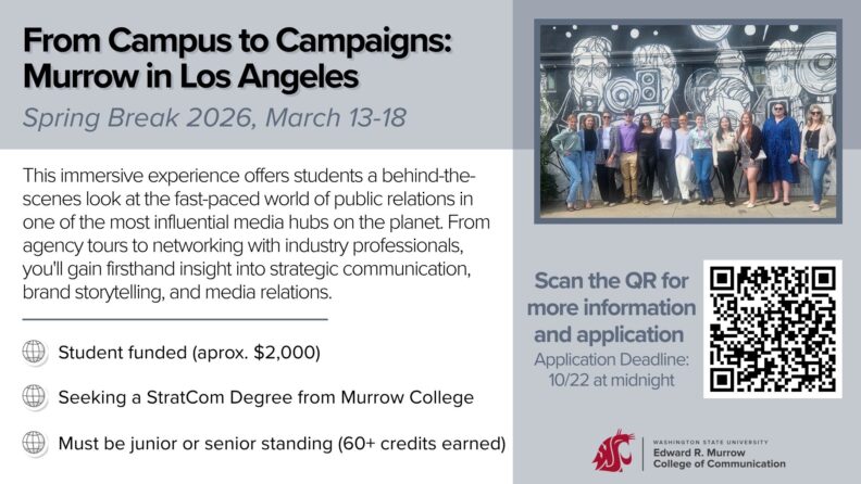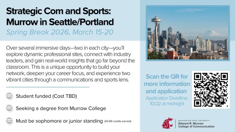 If you have questions about this opportunity, please contact the Murrow College Assistant Dean of Student Affairs, Sara Stout, at sstout@wsu.edu